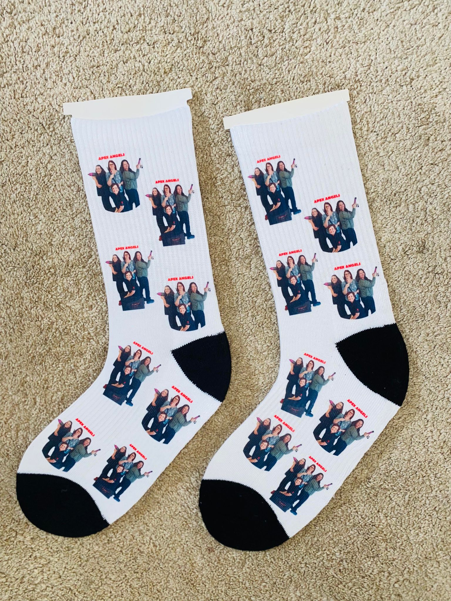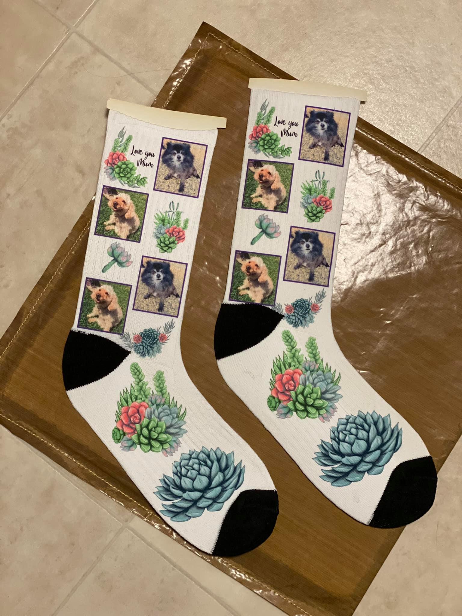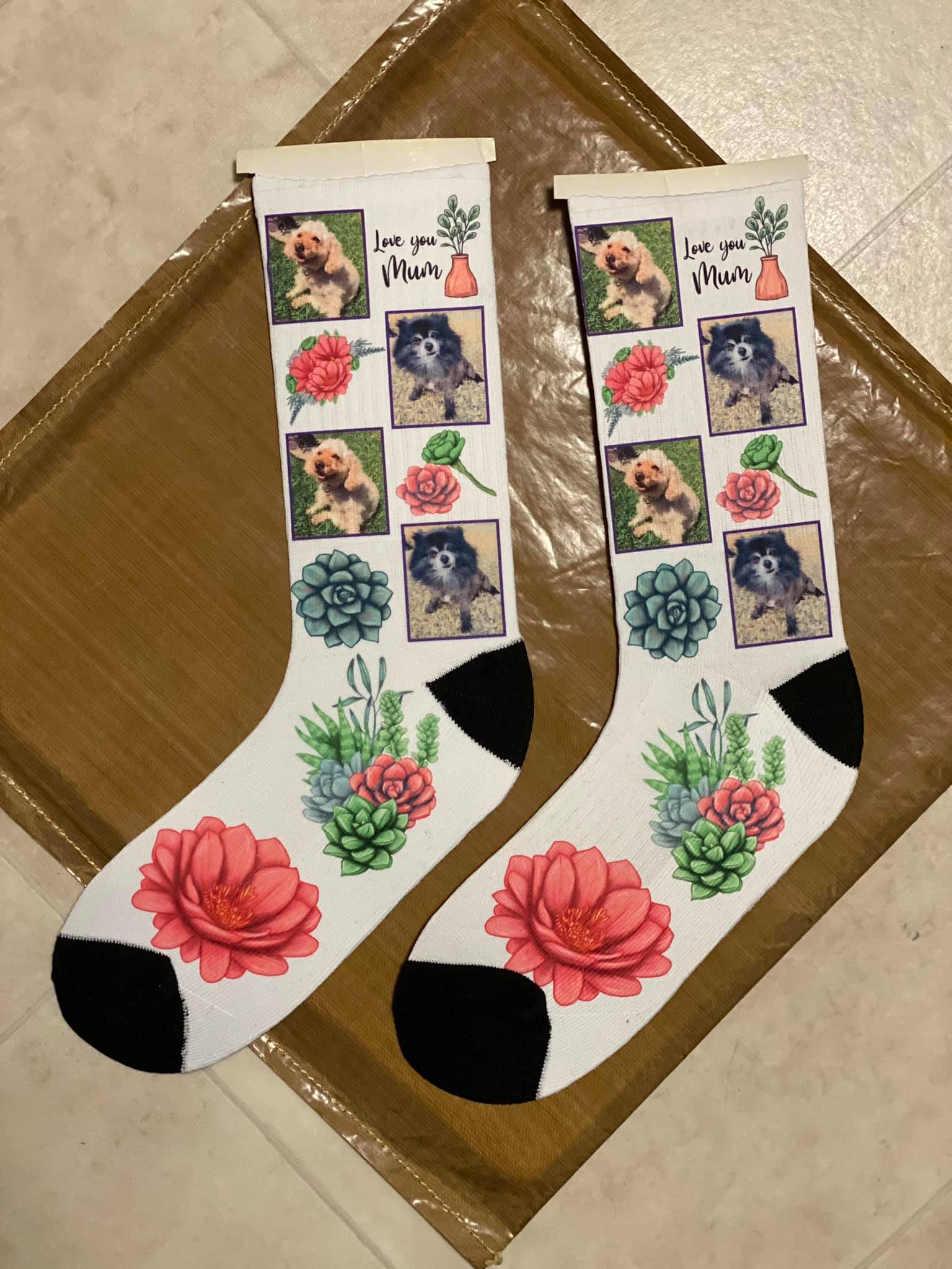 Personalised your socks by your own images, can be funny, naughty or anything, and any words you may want printed on.