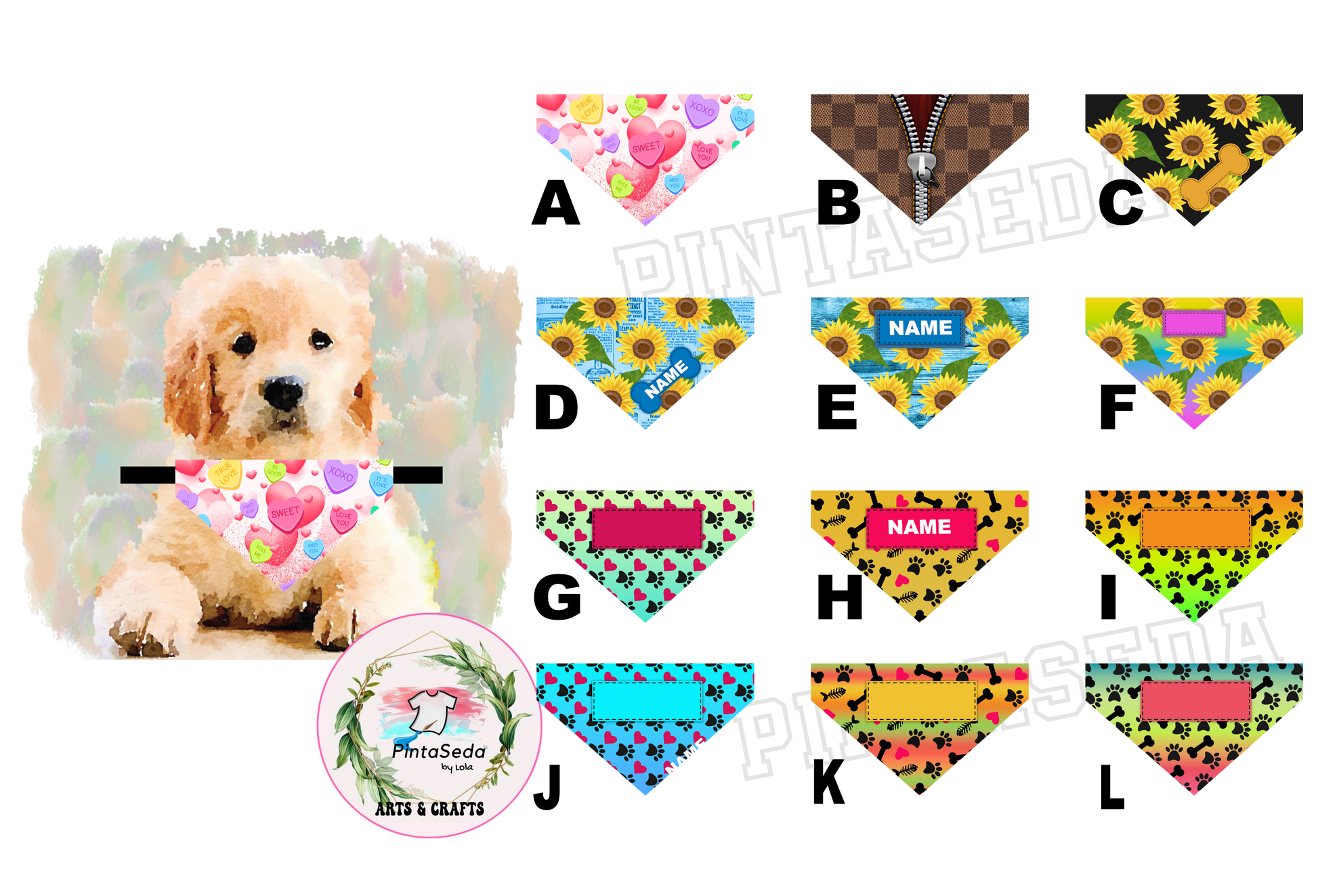 These are printable Bandanas, double sided that we can print on both sides with your choice of designs or images. Lots of available designs we have on files, or let me know if you still have something in particular that you wanted to have it printed.