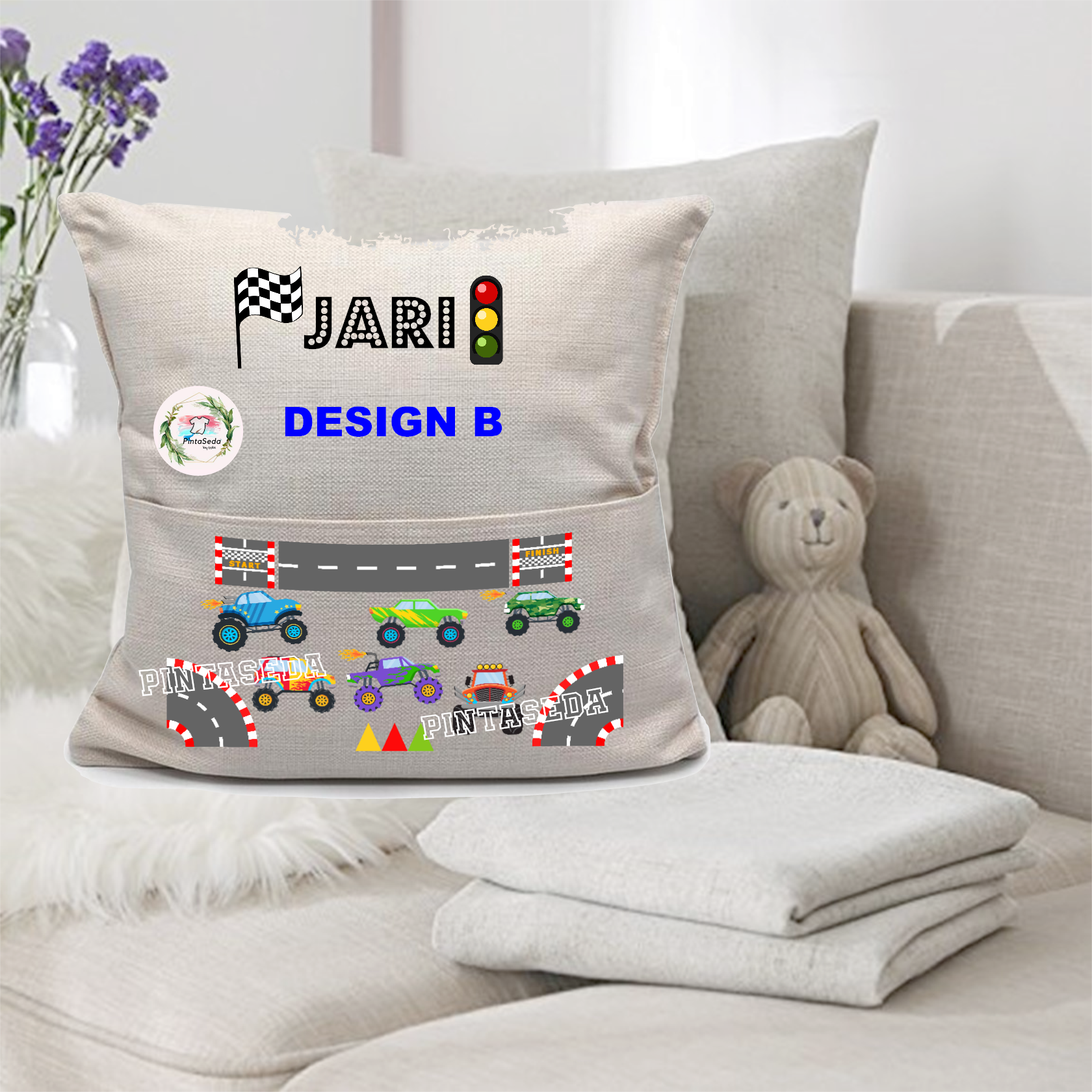 * 16inch X 16inches square Throw/Cushion Pillow.